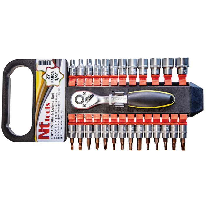NT Tools NCSET63 27 Parça 1/4'' Altı Köşe CR-V Bits ve Lokma Seti